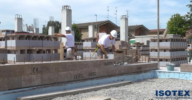 Isotex construction blocks are wood-cement formwork blocks that combine the strength of reinforced concrete with a natural insulating material.